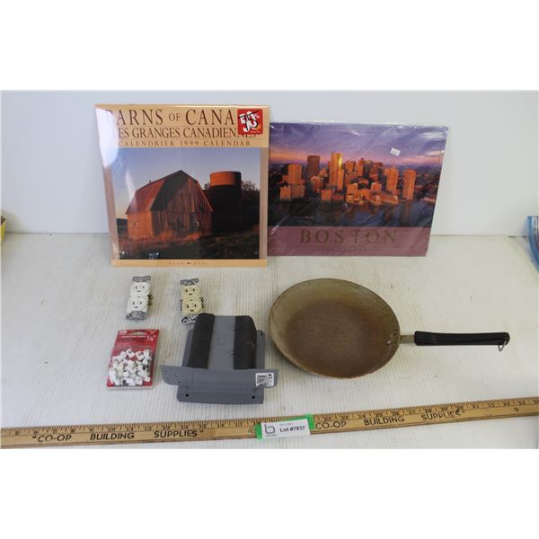 Pyrex Cake Pan, (9) Shell Décor Items, (3) Ice Shoes, + Misc. Kitchen Linens 78