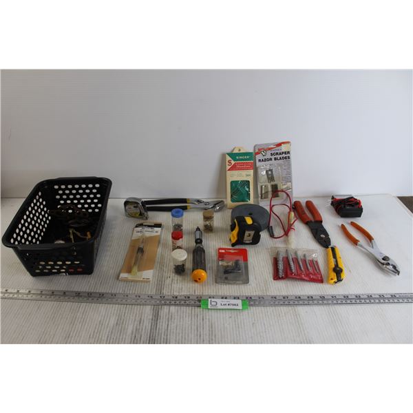 (3) Pliers, Scraper Razor Blades, Screwdriver, Misc.