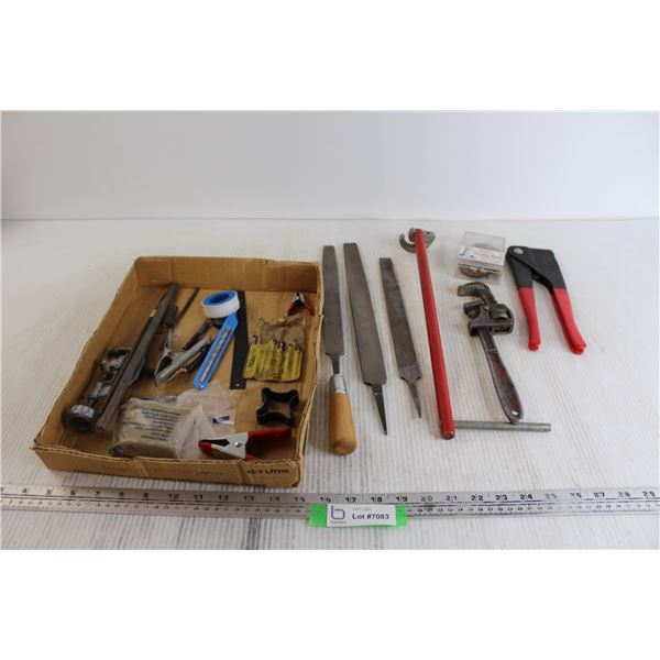 (3) Files, Pipe Wrench, Misc.