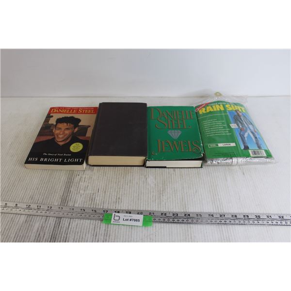 (3) Danielle Steel Books, Three-Piece Vinyl Rain Suit - In Package