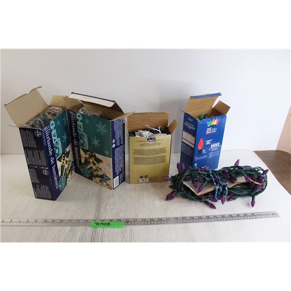 (4) Boxes Christmas Lights - Cosignor Says New, Purple Christmas Lights - Cosignor Says Working