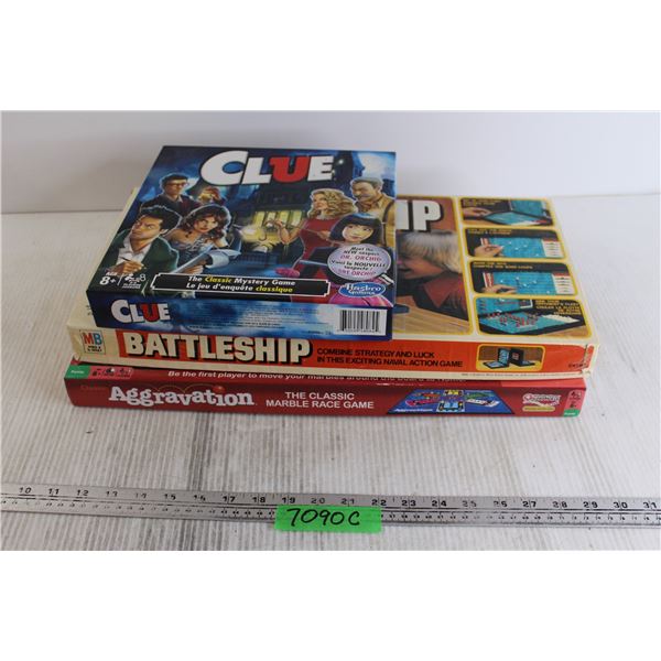 (3) Board Games - Clue, Battleship, Aggravation