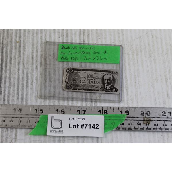 1975 $100 Metal Plate Decoration - Not Magnetic