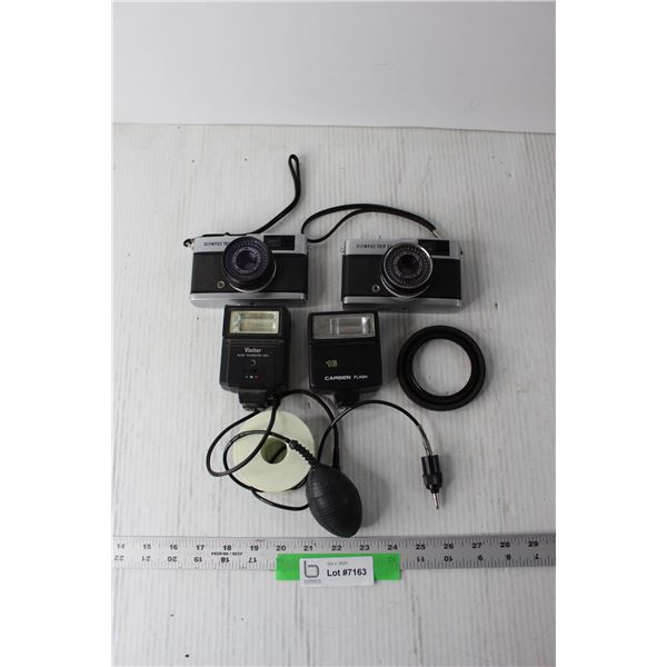 (2) Olympus Trip 35 Cameras with Accessories
