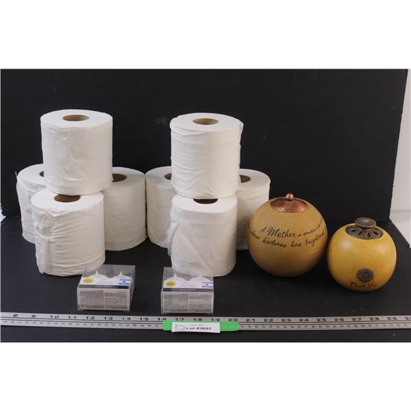 Lot: (8) RV Toilet Paper Rolls, (2) Tealight Candle Holders & (2) Battery Operated Tealight Candles in Packages