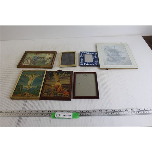 (3) Picture Frames, (3) Jesus Christ Wall Art Pieces, Children Framed Print - Largest Picture is 8"