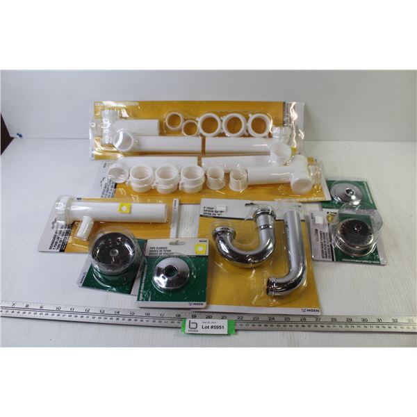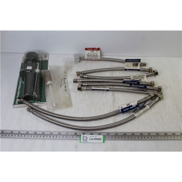 (2) Sink Waste Pop-up Assembly - Sink Mounting Clips - Flexible Braided Steel Connectors (NOS)