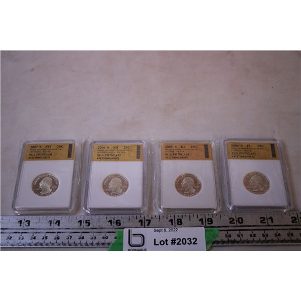 (4)Proof Washington Quarters (2000/2004/2006/2007) (Not Magnetic)2028 - (4)Proof Washington Quarters (2000/2004/2006/2007) (Not Magnetic)