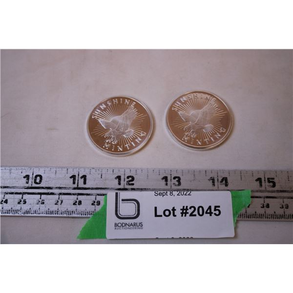 (2) Sunshine Minting Silver Coins (Not Magnetic) - Cannot Guarantee Authenticity2045 - (2) Sunshine Minting Silver Coins (Not Magnetic) - Cannot Guarantee Authenticity