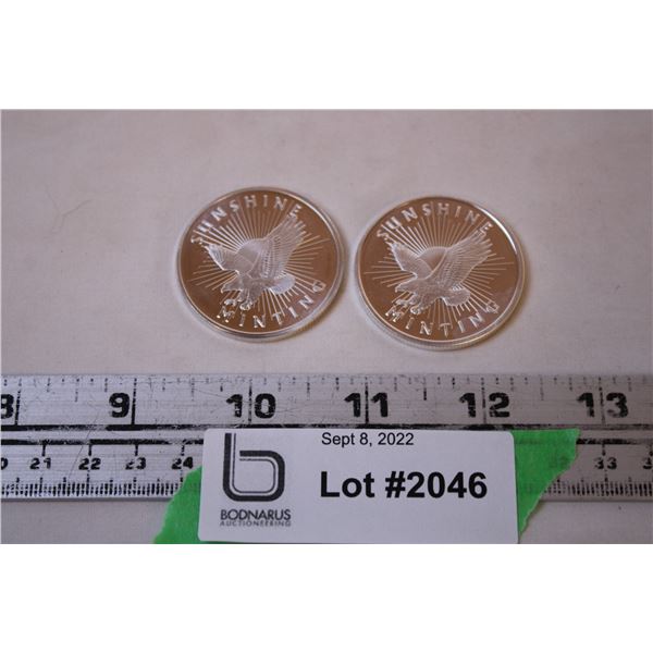(2) Sunshine Minting Silver Coins (Not Magnetic) - Cannot Guarantee Authenticity2046 - (2) Sunshine Minting Silver Coins (Not Magnetic) - Cannot Guarantee Authenticity