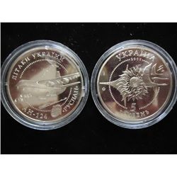 2-2005 UKRAINE HRYVEN AIRCRAFT COINS PROOF