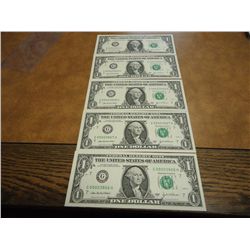 5 CONSECUTIVE LOW SERIAL # 2003-A $1 FRN'S