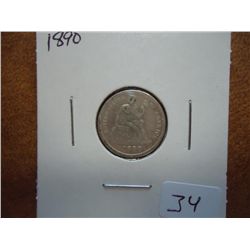 1890 SEATED LIBERTY DIME (VERY FINE) CLEANED