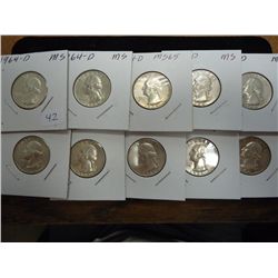 10-1964-D WASHINGTON SILVER QUARTERS UNC