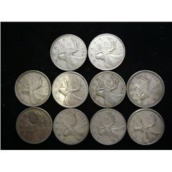10-1950'S CANADA SILVER 25 CENTS