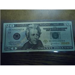 $20 RADAR NOTE SERIAL # READS THE SAME FORWARD &