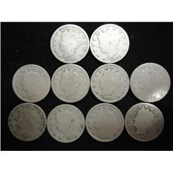 10 ASSORTED 1890'S LIBERTY "V" NICKELS