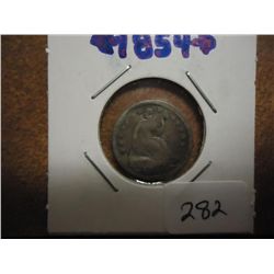 1854 SEATED LIBERTY HALF DIME BENT