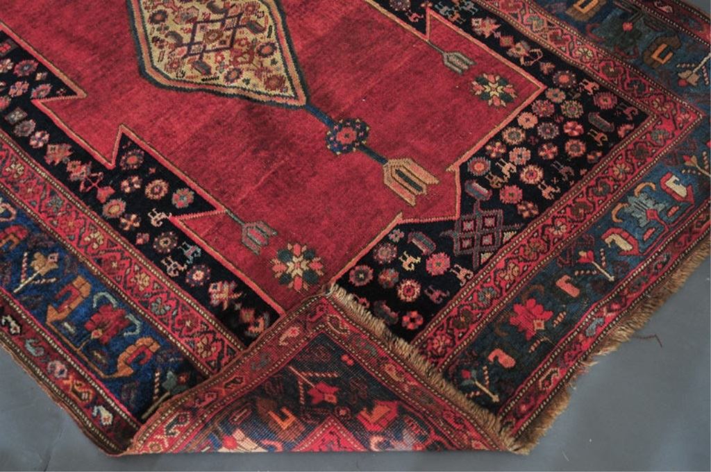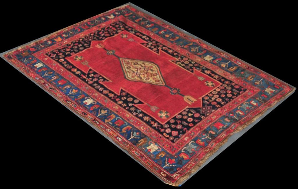 CONDITION REPORT: low to medium pile, 2 small tears at side (repaired), otherwise very good