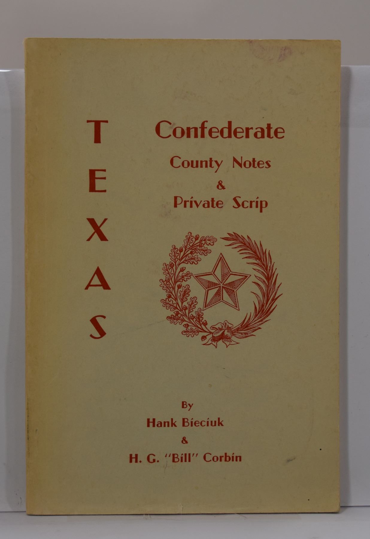 Bieciuk, Hank & H. G. 'Bill' Corbin. TEXAS CONFEDERATE COUNTY NOTES & PRIVATE SCRIP. Hank Bieciuk & H. G. 'Bill' Corbin. 1961. 12mo, 112 pages; Softcover; . Subject: Paper Money - US