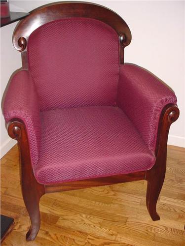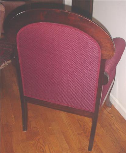 Description: Burgundy Upholstery. In Person Viewing by Request.