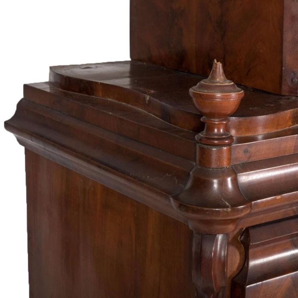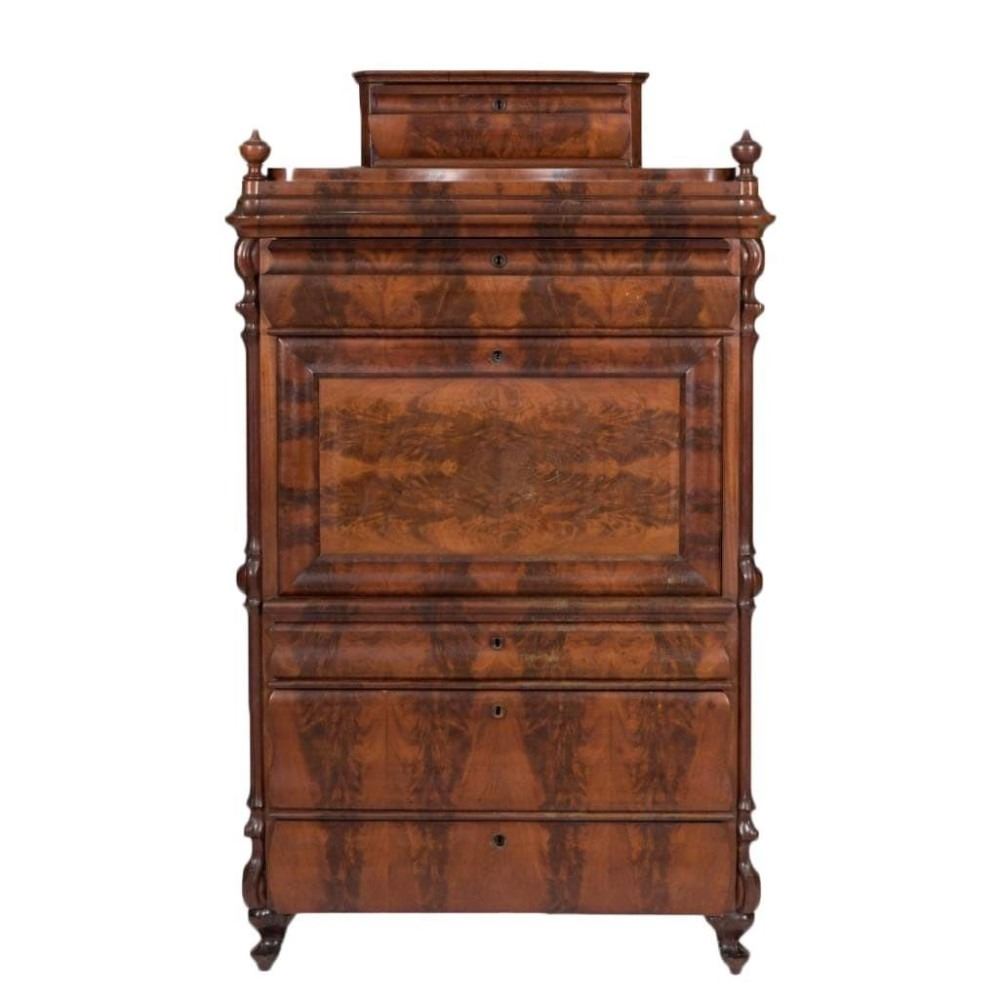 Biedermeier Secretarie Abutante. A Biedermeier secretarie abutante. Dimensions - 69" x 40" x 22" CONDITIONVeneer lifting. Damage to finials. Wear to finish. General wear from age.
