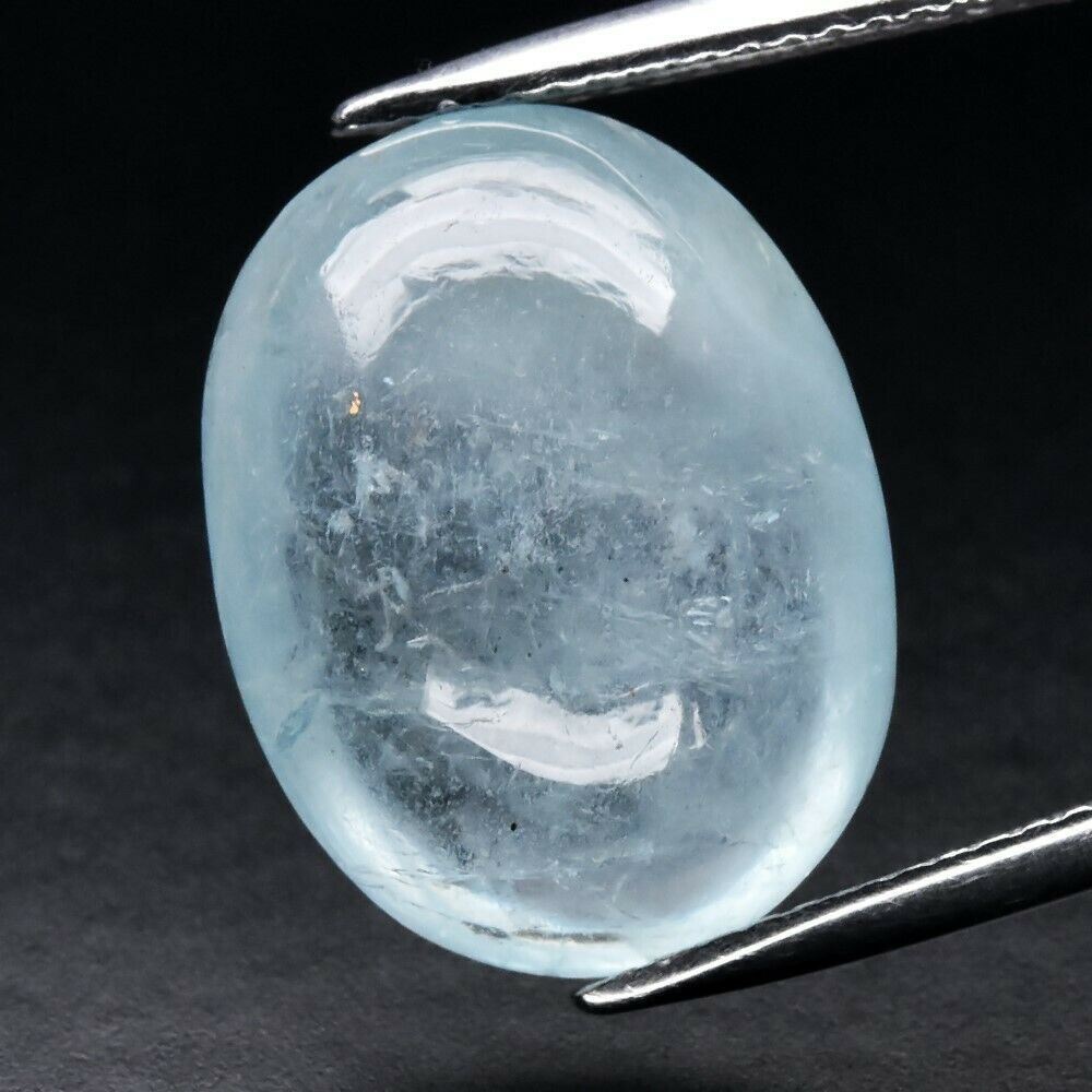 12.51 ct. 17.0 x 13.0 x 8.2 mm. Oval Cabochon, Polished Both Side Greenish Blue Semi-Translucent (Small Chipped) Brazil Unheated Untreated