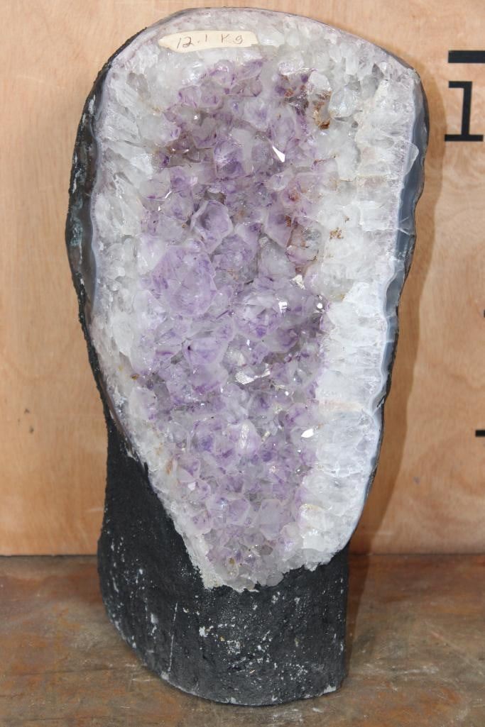Big dazzling AMETHYST Crystal Cathedral from Brazil. It measures 14" Tall x 7" Wide (at the top) x 5.5" Depth and Weighs 26.67 lbs. Amethyst is prized for its natural beauty and spiritual properties. ROCKS FOSSILS MINERALS