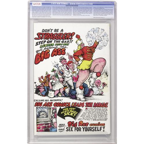 <B>Big Ass Comics #1 First Printing R. Crumb (Rip Off Press, 1969) CGC FN+ 6.5 Off-white pages.</B></I> Hard to find first printing of this R. Crumb solo classic. Fogel's Underground Comix Price Guide FN 6.0 value = $180; NM 9.4 value = $300. CGC census 12/06: 1 in 6.5, 2 higher. Adult content. Key words: R. Crumb, Robert Crumb, Underground Comix.<BR><BR><b>Shipping:</b> Slabbed Comic (<a target="_blank" href="http://www.heritageauctions.com/common/shipping.php">view shipping information</a>)
