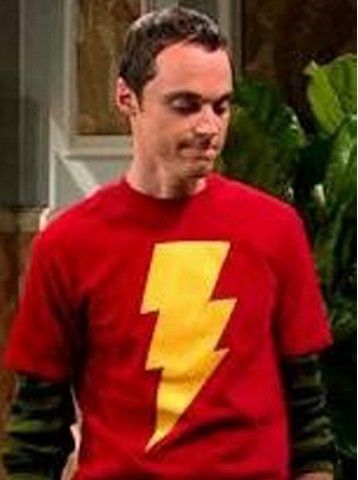 Big Bang Theory Sheldon (Jim Parsons) Full The Flash Outfit Costume - For "Big Bang Theory" fans this is a truly grand collectable. Sheldon Cooper's (Jim Parsons) full "The Flash" outfit worn on the series. It includes is iconic "The Flash" short sleeve t-shirt, dark green long sleeve undershirt, and is tan casual pants. The full outfit comes with the original production Wardrobe tag.