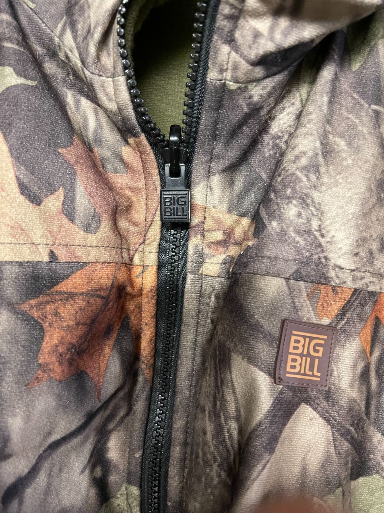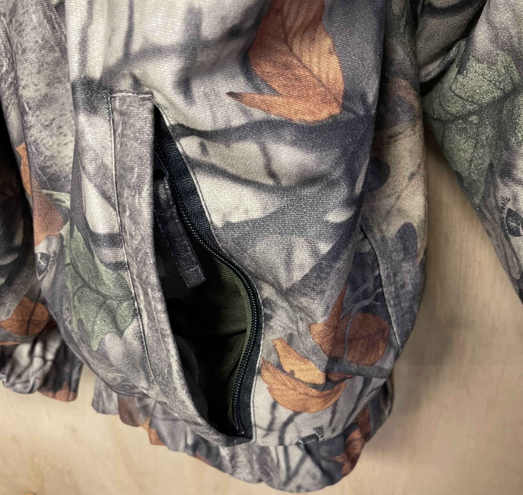 - Zippered slash pockets on camo side, slash pockets on green side