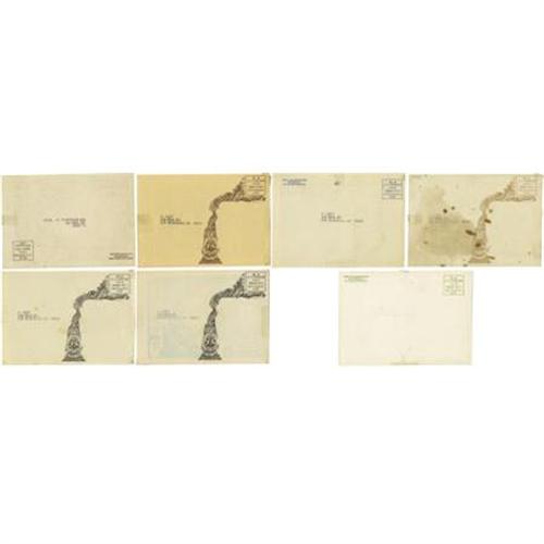 <B>Big Brother and the Holding Company Avalon Concert Postcard Group (Family Dog, 1967-68).</B></I> Includes FD-48 "James Gurley"; FD-52 "Contact"; FD-55 "God's Eye"; FD-60 "Motherload" (with photo of Janis Joplin and band); FD-65 "Aunt Jemima/Magic Show"; FD-68 "Avalon Ballroom" (stained); and FD-671123 "Turkey Trot". All cards were addressed and have bulk mail backs, and all have tape on at least two sides of the card. Otherwise, they average VG+.<BR><BR><b>Shipping:</b> Flat Material, Small (<a target="_blank" href="http://www.heritageauctions.com/common/shipping.php">view shipping information</a>)