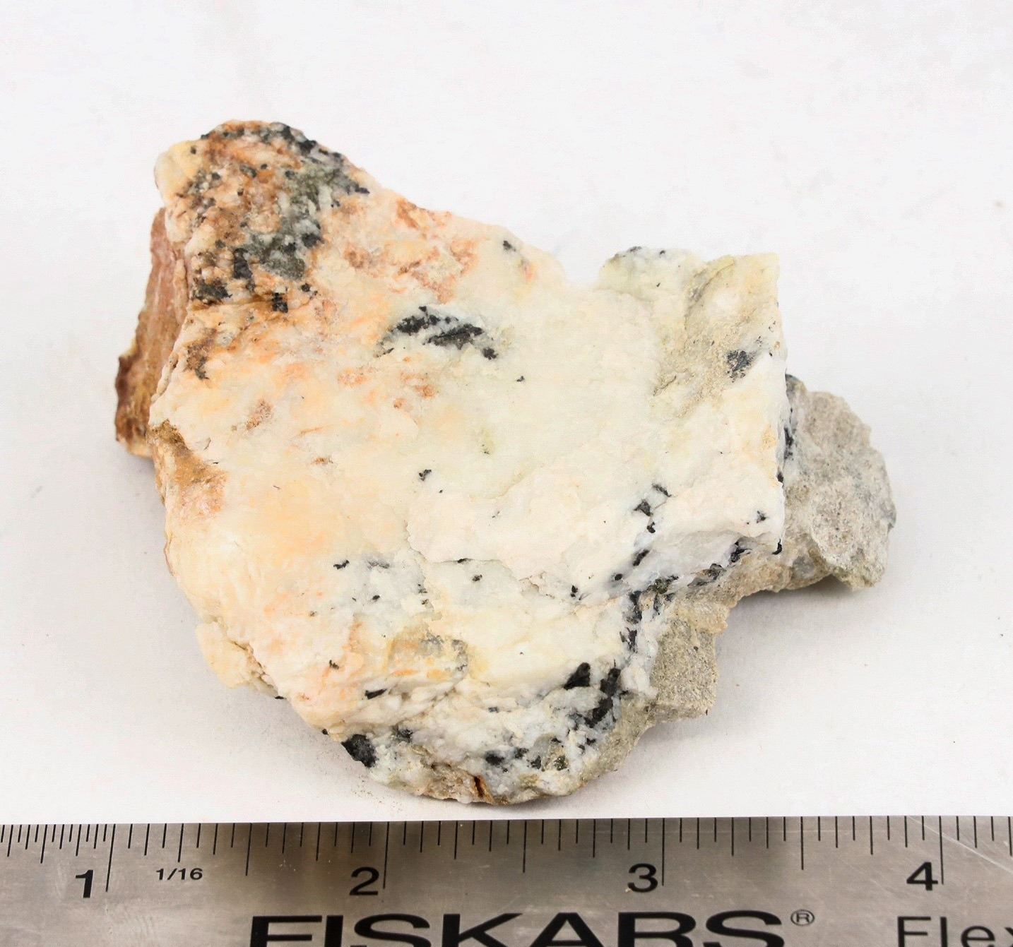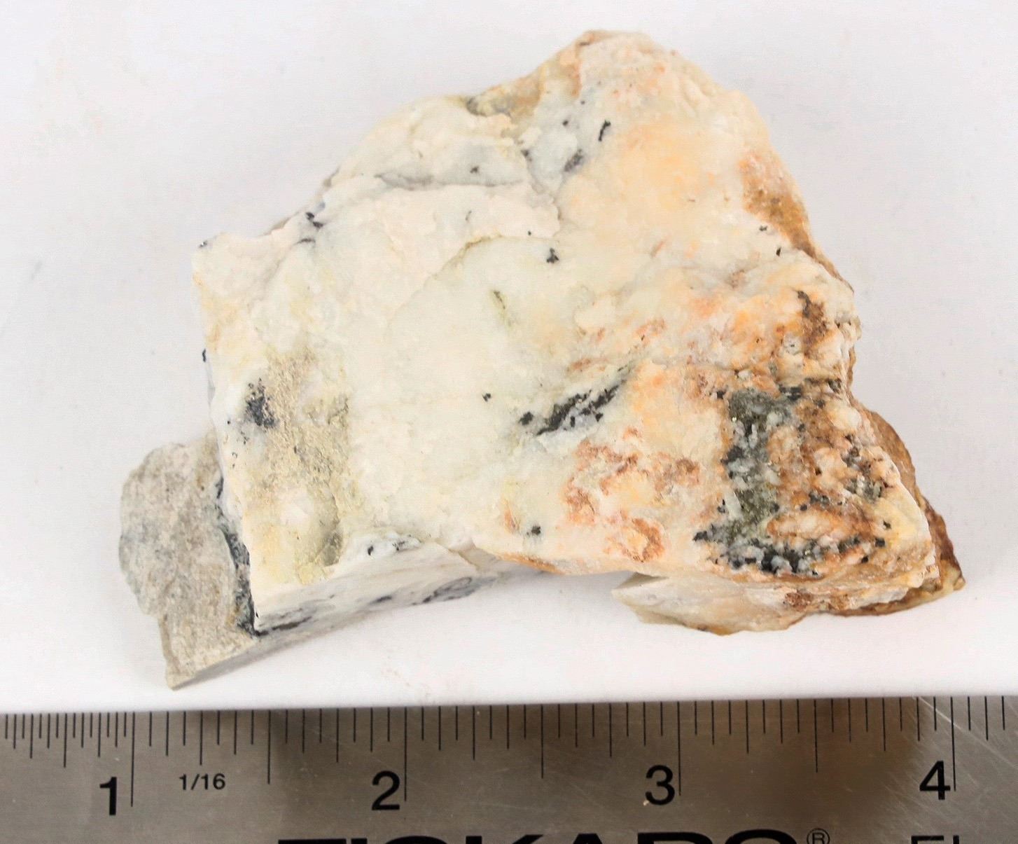 Big Buffalo Mine Ore, Native Gold, about 3 x 3 x 1". Two specks of native gold marked. Buffalo Hump Mining District. Letteer to Shaddrick from mine geology friend enclosed.