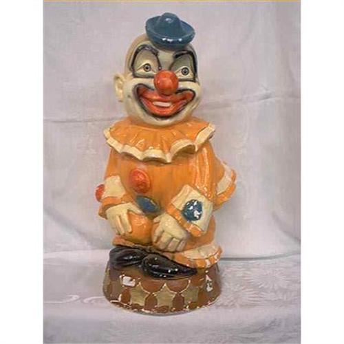 Clown bank, made of chalk ware. He's a real big fellow measuring 18 inches high and 9.5 inches wide. This clown bank is marked, ATOZ Production. There are some paint chips but other than that he is actually in good condition.
