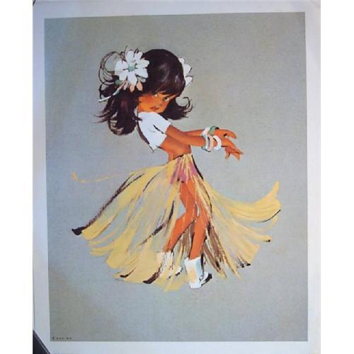 Collection of Five (5) Vintage Prints I am presenting five Whimsical Big Eyed Children from the 60's in various sport themes. The first of these 9x11 inch prints is a big eyed blond girl playing tennis. Another shows latin dancing with those wonderful white boots that were made for walking. While yet another shows dress up hula dancing done by a beautiful black haired child. One shows platinum blond at the popular sport of bowling, while a fifth one shows punk rocker with the hair of that day. These prints are not signed by the artist but were copyright by Donald Art Company in 1967 and are numbered 5143 thur 5147. These would look soo.....ooo good in a recreation room. Framing is available. Just e-mail me for suggestions. <p>
