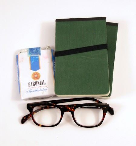 Dick Nolan (Danny Huston) screen used, hero, tortoise frame eye glasses, pack of cigarettes, and two notepads.