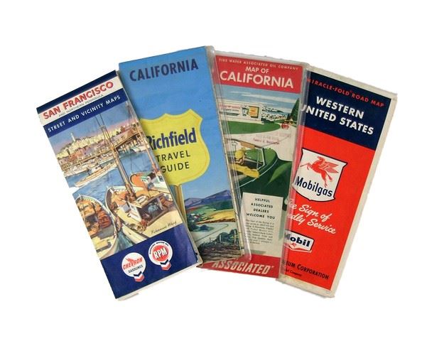Five screen used, vintage Western United States and San Francisco road maps. (approx. 9" x 4" each)