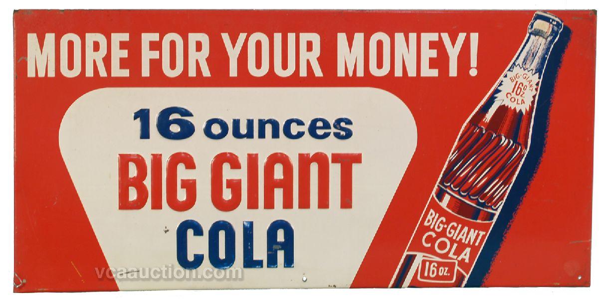Big Giant Cola Embossed Tin Sign - 23" x 11"