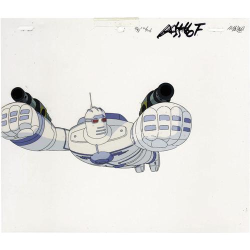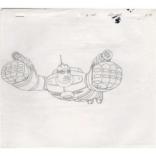 <B>Big Guy and Rusty the Boy Robot Animation Production Cel and Clean-Up Drawing Original Art, Group of 3 (Columbia/Tri-Star, 1999-2001).</B></I> Heavily-armed robot champion, BGGY-11, is comin' right at you in these two hand-painted animation cels from the animated series, "Big Guy and Rusty the Boy Robot," which was created by Frank Miller and Geof Darrow. Includes the clean-up drawing used to create these cels. Each measures approximately 10.5" x 9", and is in Excellent condition.<BR><BR><b>Shipping:</b> Small Flat (<a target="_blank" href="http://www.heritageauctions.com/common/shipping.php">view shipping information</a>)