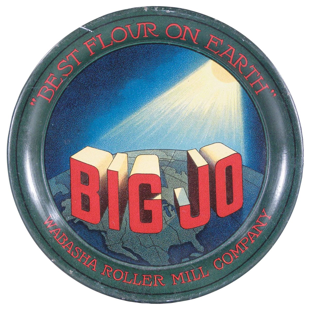 Big Jo Wabasha Roller Mill Company Tin Tip Tray. Best flour on earth. Excellent condition. 4 1/4 inch diameter. Start Price $20