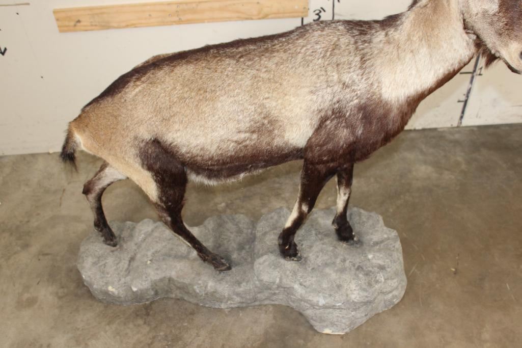 Very Nice, Clean, and Newer Life-sized GREDOS IBEX. The Left Horn measures 28.5" Long and the Right Horn measures 29.25" Long. It is on a light weight foam simulated Rock Base. The Total Mount measures 57" Long x 18" Wide x 67" Tall. It is in Good Condition. TAXIDERMY *This item was sold in our last auction. The buyer did not pay, it is being resold*.