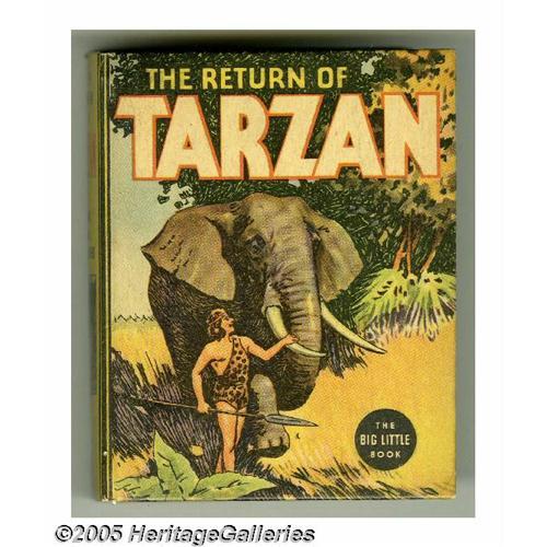 <B>Big Little Book #1102 The Return of Tarzan (Whitman, 1936) Condition: NM-.</B></I> Adapted from the book by Edgar Rice Burroughs, with art by Rex Mason. Hard cover, 432 pages. Features 209 illustrations reprinted from the second <I>Tarzan</B></I> daily storyline. Overstreet 2005 VF/NM value = $130. <BR><BR><B>Important notice:</B> Heritage usually auctions material at the rate of 200-250 lots per hour. On some occasions eBay Live bid software or the Internet may not be able to keep up with the pace of the auction. We recommend placing a realistic absentee bid now as insurance to avoid disappointment. Occasionally the auctioneer may eliminate or reject an eBay Live bid, and the auctioneer may also reopen a lot after the close of the eBay live bidding (usually because we missed an audience bid), and may reject your bid even if it shows you as the winning bidder. By bidding via eBay Live, you agree that Heritage may award the lot to another bidder at its sole discretion under the circumstances described above or any other reasonable circumstances. Since eBay bids are not shown to us until we open the lot on the floor, we treat those bids just like floor bids. In most cases the floor responds before the eBay bid is presented to us, due to Internet lag time, so for consistency we have made it a policy that floor bids are always considered first over tie eBay live bids. Also please note that all Heritage lots purchased through eBay Live carry a 20% Buyer's Premium. Please make sure you read the Terms and Conditions before you bid. This lot is being auctioned in conjunction with a live floor auction by Heritage Galleries & Auctioneers. All final auction and invoice information will be supplied by Heritage Galleries & Auctioneers, and all other information should be considered preliminary. Lot:3472 <BR><BR><B>Winning Notification and Billing:</B> After the FINAL session in this auction is complete, Heritage will send e-mail and snail mail invoices. This process normally