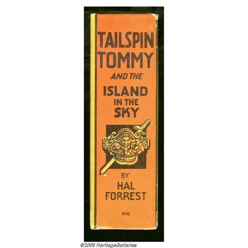 <B>Big Little Book #1110 Tailspin Tommy and the Island in the Sky (Whitman, 1936) Condition: VF.</B></I> Hard cover, 432 pages. Written and illustrated by Hal Forrest. Small water spot on back cover. Overstreet 2005 FN value = $35; VF/NM value = $70. <BR><BR><B>Important notice:</B> Heritage usually auctions material at the rate of 200-250 lots per hour. On some occasions eBay Live bid software or the Internet may not be able to keep up with the pace of the auction. We recommend placing a realistic absentee bid now as insurance to avoid disappointment. Occasionally the auctioneer may eliminate or reject an eBay Live bid, and the auctioneer may also reopen a lot after the close of the eBay live bidding (usually because we missed an audience bid), and may reject your bid even if it shows you as the winning bidder. By bidding via eBay Live, you agree that Heritage may award the lot to another bidder at its sole discretion under the circumstances described above or any other reasonable circumstances. Since eBay bids are not shown to us until we open the lot on the floor, we treat those bids just like floor bids. In most cases the floor responds before the eBay bid is presented to us, due to Internet lag time, so for consistency we have made it a policy that floor bids are always considered first over tie eBay live bids. Also please note that all Heritage lots purchased through eBay Live carry a 20% Buyer's Premium. Please make sure you read the Terms and Conditions before you bid. This lot is being auctioned in conjunction with a live floor auction by Heritage Galleries & Auctioneers. All final auction and invoice information will be supplied by Heritage Galleries & Auctioneers, and all other information should be considered preliminary. Lot:3471 <BR><BR><B>Winning Notification and Billing:</B> After the FINAL session in this auction is complete, Heritage will send e-mail and snail mail invoices. This process normally takes several days. All final auction and invoice in