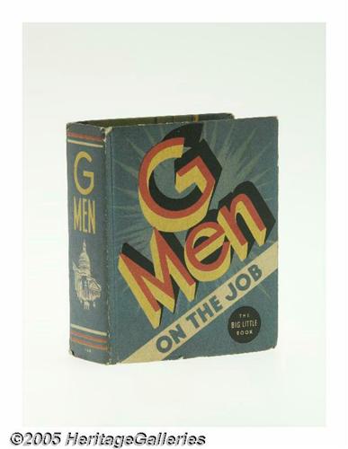 <B>Big Little Book #1168 G-Men on the Job (Whitman, 1936).</B></I> Hard cover, 432 pages. Standard size 3.625" x 4.5" x 1.5". Written by Dick Blair, and illustrated by Milt Youngren especially for the Whitman Big Little Book format. Overstreet 2005 FN value = $25; VF/NM value = $55.