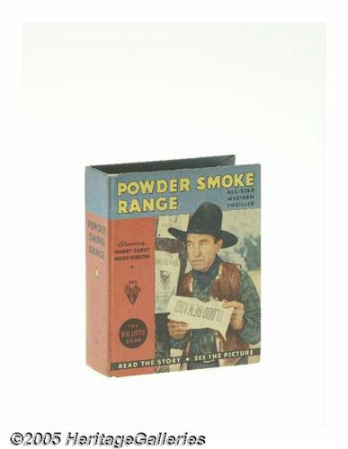 <B>Big Little Book #1176 Powder Smoke Range (Whitman, 1935) Condition: NM-.</B></I> Photo cover; movie scenes with Hoot Gibson and Harry Carey. 240 pages. Overstreet 2005 VF/NM value = $80.