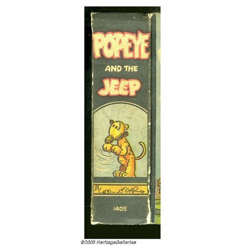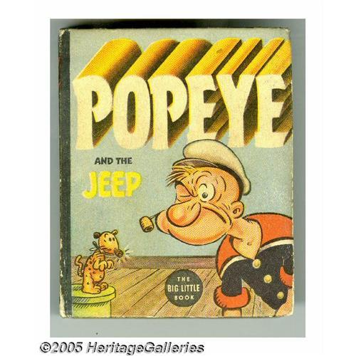 <B>Big Little Book #1405 Popeye and the Jeep (Whitman, 1937) Condition: FN/VF.</B></I> Hard cover, 432 pages. Written and illustrated by E. C. Segar. Reprinted from the <I>Popeye</B></I> daily strip beginning March 3, 1936 and ending in June, 1936. Overstreet 2005 FN value = $35; VF/NM value = $70. <BR><BR><B>Important notice:</B> Heritage usually auctions material at the rate of 200-250 lots per hour. On some occasions eBay Live bid software or the Internet may not be able to keep up with the pace of the auction. We recommend placing a realistic absentee bid now as insurance to avoid disappointment. Occasionally the auctioneer may eliminate or reject an eBay Live bid, and the auctioneer may also reopen a lot after the close of the eBay live bidding (usually because we missed an audience bid), and may reject your bid even if it shows you as the winning bidder. By bidding via eBay Live, you agree that Heritage may award the lot to another bidder at its sole discretion under the circumstances described above or any other reasonable circumstances. Since eBay bids are not shown to us until we open the lot on the floor, we treat those bids just like floor bids. In most cases the floor responds before the eBay bid is presented to us, due to Internet lag time, so for consistency we have made it a policy that floor bids are always considered first over tie eBay live bids. Also please note that all Heritage lots purchased through eBay Live carry a 20% Buyer's Premium. Please make sure you read the Terms and Conditions before you bid. This lot is being auctioned in conjunction with a live floor auction by Heritage Galleries & Auctioneers. All final auction and invoice information will be supplied by Heritage Galleries & Auctioneers, and all other information should be considered preliminary. Lot:3467 <BR><BR><B>Winning Notification and Billing:</B> After the FINAL session in this auction is complete, Heritage will send e-mail and snail mail invoices. This process normally tak