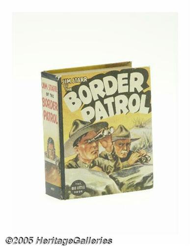 <B>Big Little Book #1428 Jim Starr of the Border Patrol (Whitman, 1937) Condition: VF+.</B></I> Hard cover, 432 pages. Standard size 3.625" x 4.5" x 1.5". Written by Oren Arnold, and illustrated by H. Anderson. Cover art by Hal Arbo. Overstreet 2005 VF/NM value = $55.