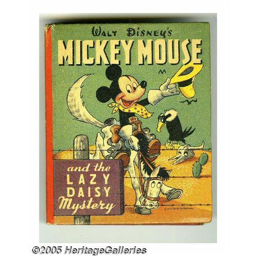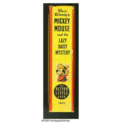 <B>Big Little Book #1433 Mickey Mouse and the Lazy Daisy Mystery (Whitman, 1947) Condition: VF.</B></I> This 288 page hardcover Better Little Book is written by author Bill Walsh, with art by Floyd Gottfredson. Reprinted from the <I>Mickey Mouse</B></I> daily strip, beginning March 5, 1945 and ending June 16, 1945. Some foxing on the edges and end papers. Overstreet 2005 VF/NM value = $110. <BR><BR><B>Important notice:</B> Heritage usually auctions material at the rate of 200-250 lots per hour. On some occasions eBay Live bid software or the Internet may not be able to keep up with the pace of the auction. We recommend placing a realistic absentee bid now as insurance to avoid disappointment. Occasionally the auctioneer may eliminate or reject an eBay Live bid, and the auctioneer may also reopen a lot after the close of the eBay live bidding (usually because we missed an audience bid), and may reject your bid even if it shows you as the winning bidder. By bidding via eBay Live, you agree that Heritage may award the lot to another bidder at its sole discretion under the circumstances described above or any other reasonable circumstances. Since eBay bids are not shown to us until we open the lot on the floor, we treat those bids just like floor bids. In most cases the floor responds before the eBay bid is presented to us, due to Internet lag time, so for consistency we have made it a policy that floor bids are always considered first over tie eBay live bids. Also please note that all Heritage lots purchased through eBay Live carry a 20% Buyer's Premium. Please make sure you read the Terms and Conditions before you bid. This lot is being auctioned in conjunction with a live floor auction by Heritage Galleries & Auctioneers. All final auction and invoice information will be supplied by Heritage Galleries & Auctioneers, and all other information should be considered preliminary. Lot:3464 <BR><BR><B>Winning Notification and Billing:</B> After the FINAL session in this auc