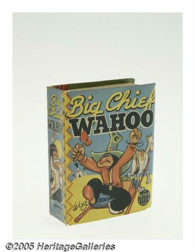 <B>Big Little Book #1443 Big Chief Wahoo and the Great Gusto (Whitman, 1938) Condition: VF.</B></I> This is the first Chief Wahoo Big Little Book. Better Little Book. Hard cover, 432 pages. Standard size 3.625" x 4.5" x 1.5". Written by Allen Saunders, and illustrated by Elmer Woggon. Overstreet 2005 VF/NM value = $65.