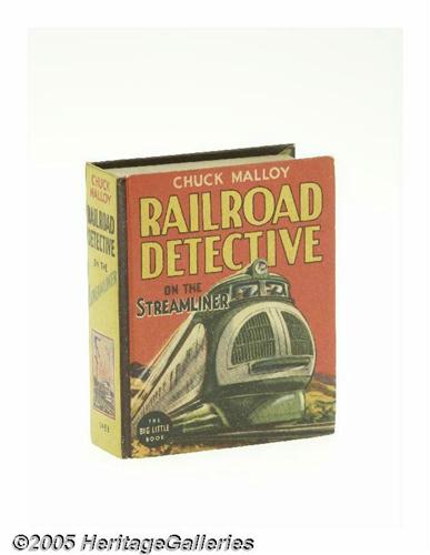 <B>Big Little Book #1453 Chuck Malloy Railroad Detective on the Streamliner (Whitman, 1938) Condition: VF/NM.</B></I> Hard cover, 432 pages. Standard size 3.625" x 4.5" x 1.5". Written by Thorp McClusky, and illustrated by Joseph R. Kress especially for the Whitman Big Little Book format. Overstreet 2005 VF/NM value = $55.